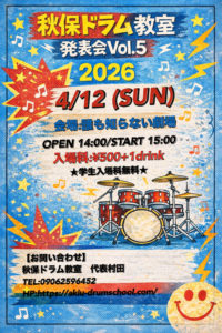 【秋保ドラム教室発表会Vol.5のお知らせ】
