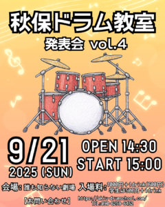 【秋保ドラム教室発表会Vol.4のお知らせ】